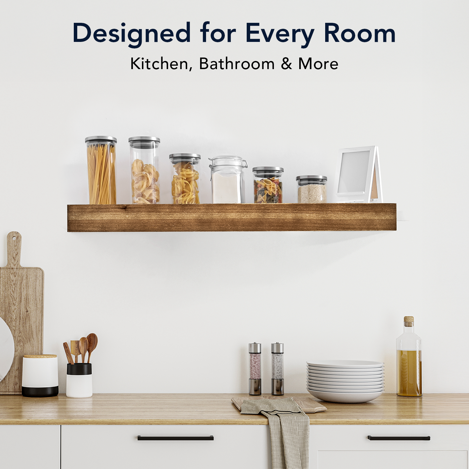 • FLOATING SHELF – Create wonderful storage solutions for your home with this floating shelf that hides unsightly brackets and keeps your wall space looking clean, tidy, and clutter-free.