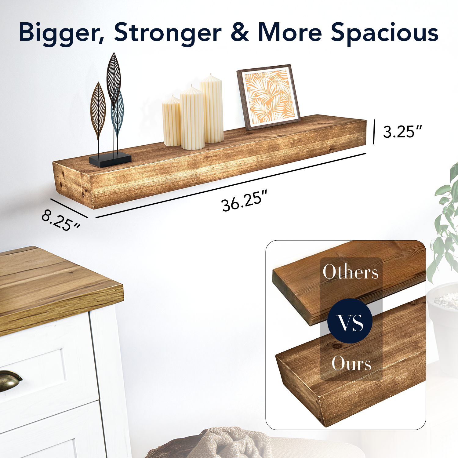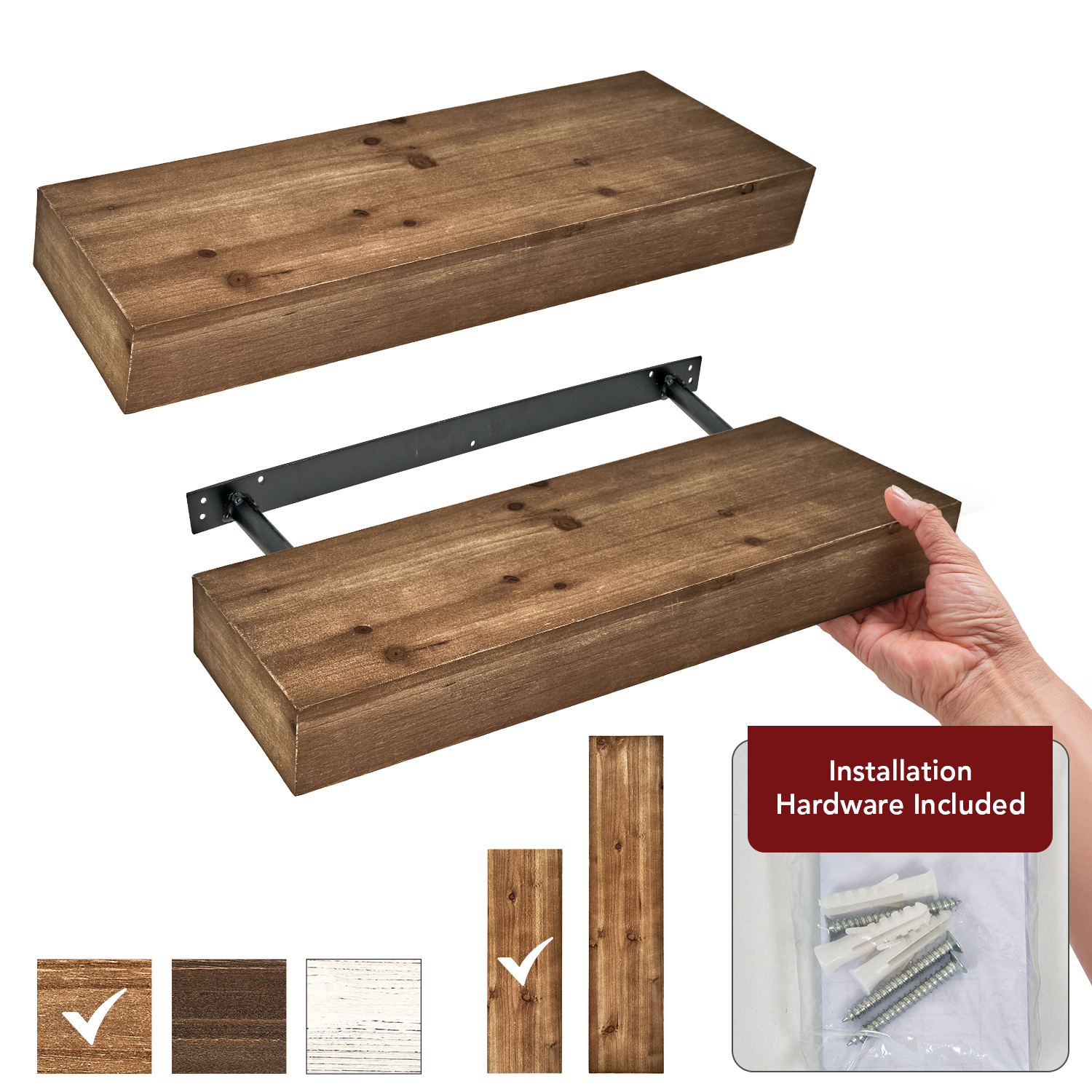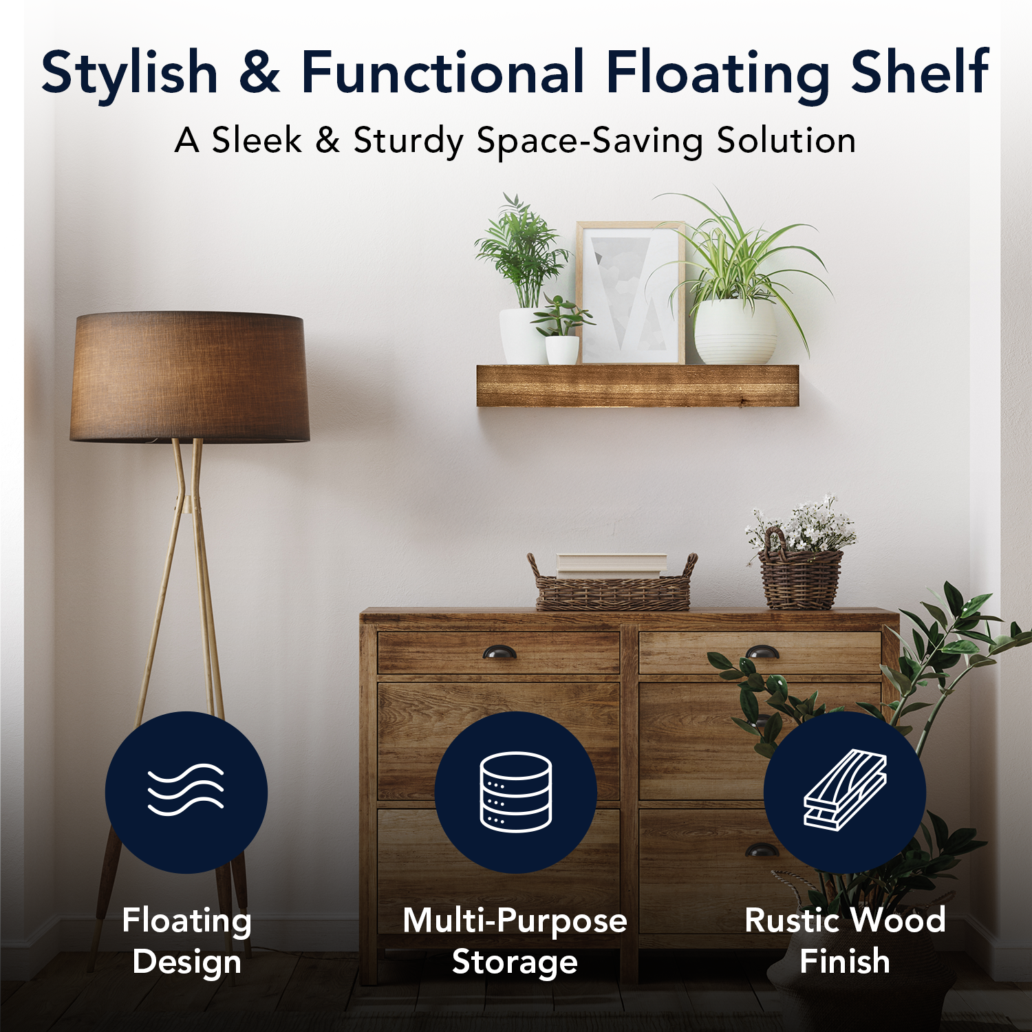 Rustic Wood Floating Wall Shelf - Small/Walnut Brown