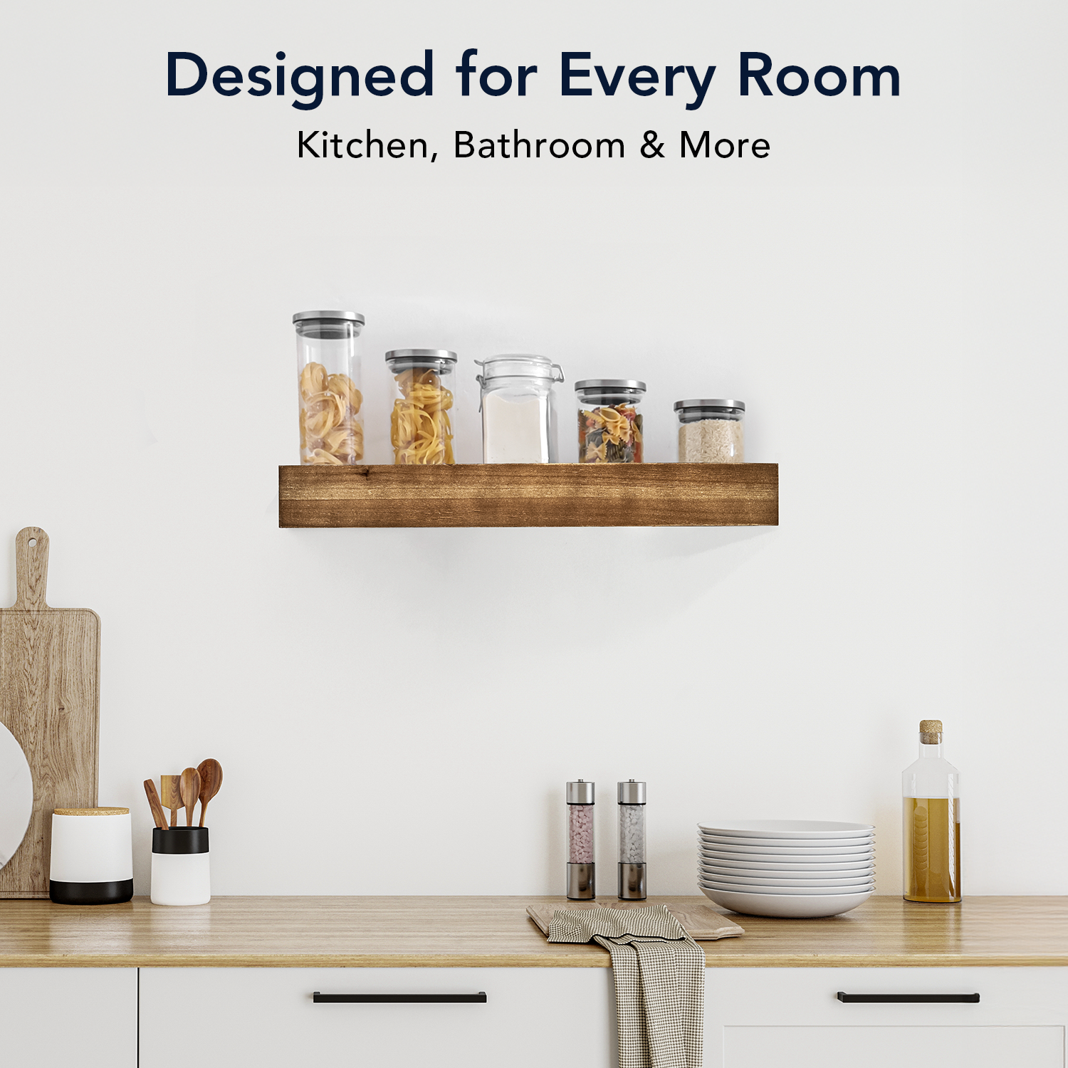 - VERSATILE – Perfect for your living room, bedroom, bathroom, garage or kitchen, this floating shelf really works in a variety of home decor situations for a variety of purposes. Whether for storing bathroom necessities, kitchen essentials, or for photos, plants and other design and decor accents and accessories, this shelf offers a multitude of functions.